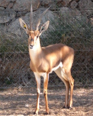 La primera imagen corresponde a una gacela Dorca que nació en Almería y que ahora, junto con otros ejemplares, vive en Mauritania. Son originarias de la zona, pero las guerras, los cazadores furtivos y las sequías de los años 70 acabaron con toda su población.
