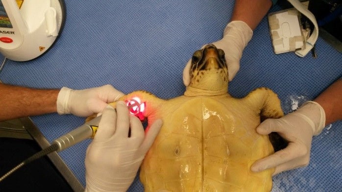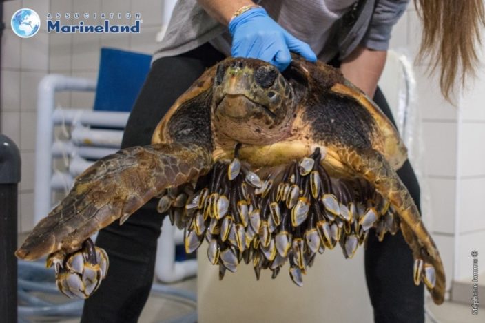 Un equipo veterinario especializado del parque Marineland se hace cargo de las tortugas y las rehabilita, para poder devolverlas al mar en cuanto su estado físico y de salud lo permite. Este esfuerzo de conservación se desarrolla bajo la supervisión del RTMMF (Réseau des Tortues Marines de Méditerranée ; «Red de totugas marinas del Mediterráneo» en español).