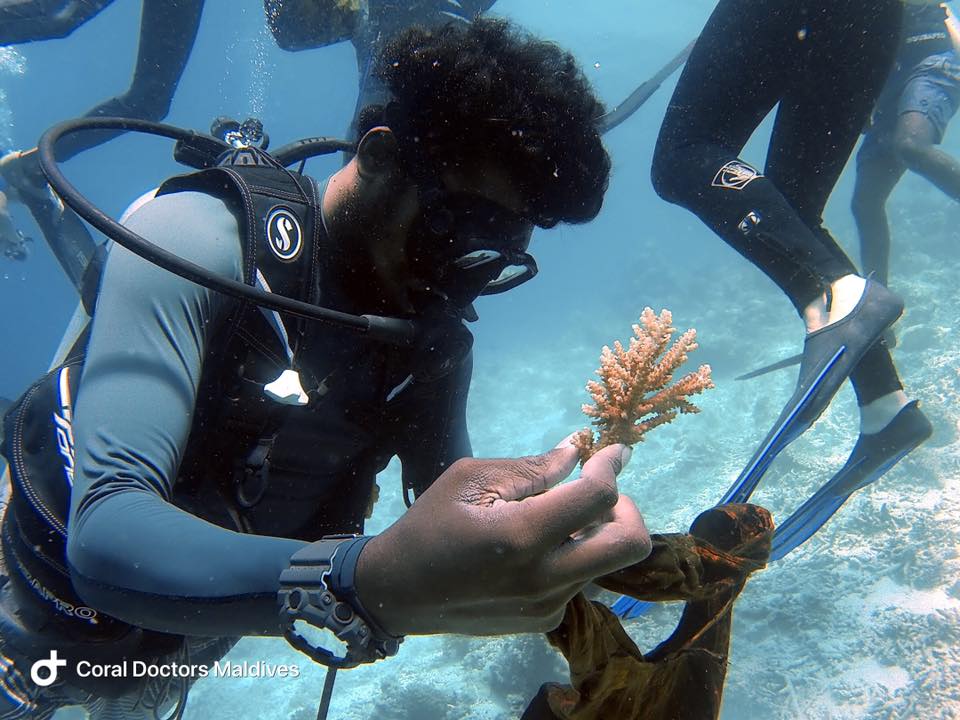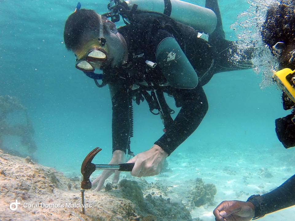 Thanks to the support of the Parques Reunidos Foundation, the Zoo Aquarium de Madrid and its curator Pablo Montoto have been able to participate in the project launched by the Meeresmuseum de Stralsund (German Oceanographic Museum) and the German association Coral Doctors to conduct field courses to educate in the restoration of coral reefs in the Maldives Islands.