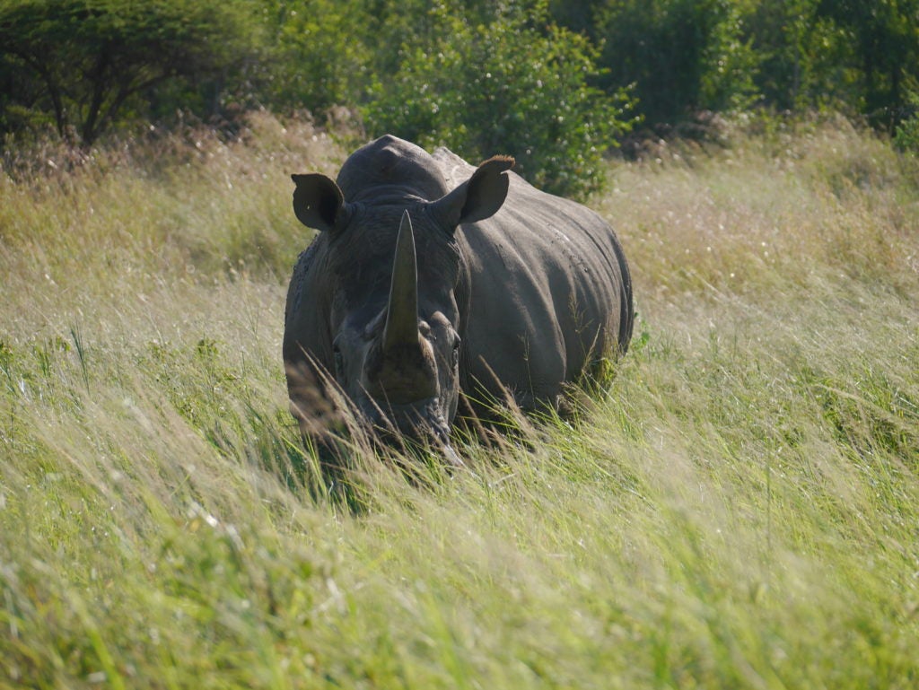 Three white rhinos. (c) Save the Rhino International